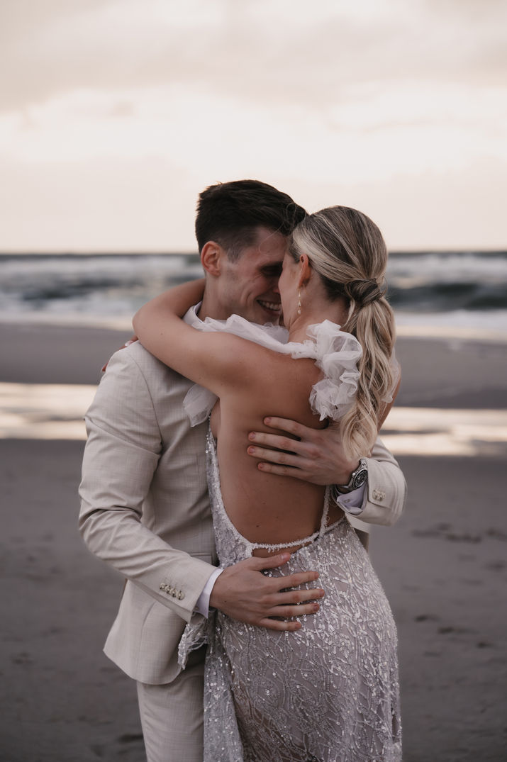 Nach den bewegenden Momenten des Hochzeitstags zog es Vanessa & Linus an den Strand, wo die Nordsee und die sanften Farben der Abenddämmerung die perfekte Kulisse für ein romantisches Shooting boten.